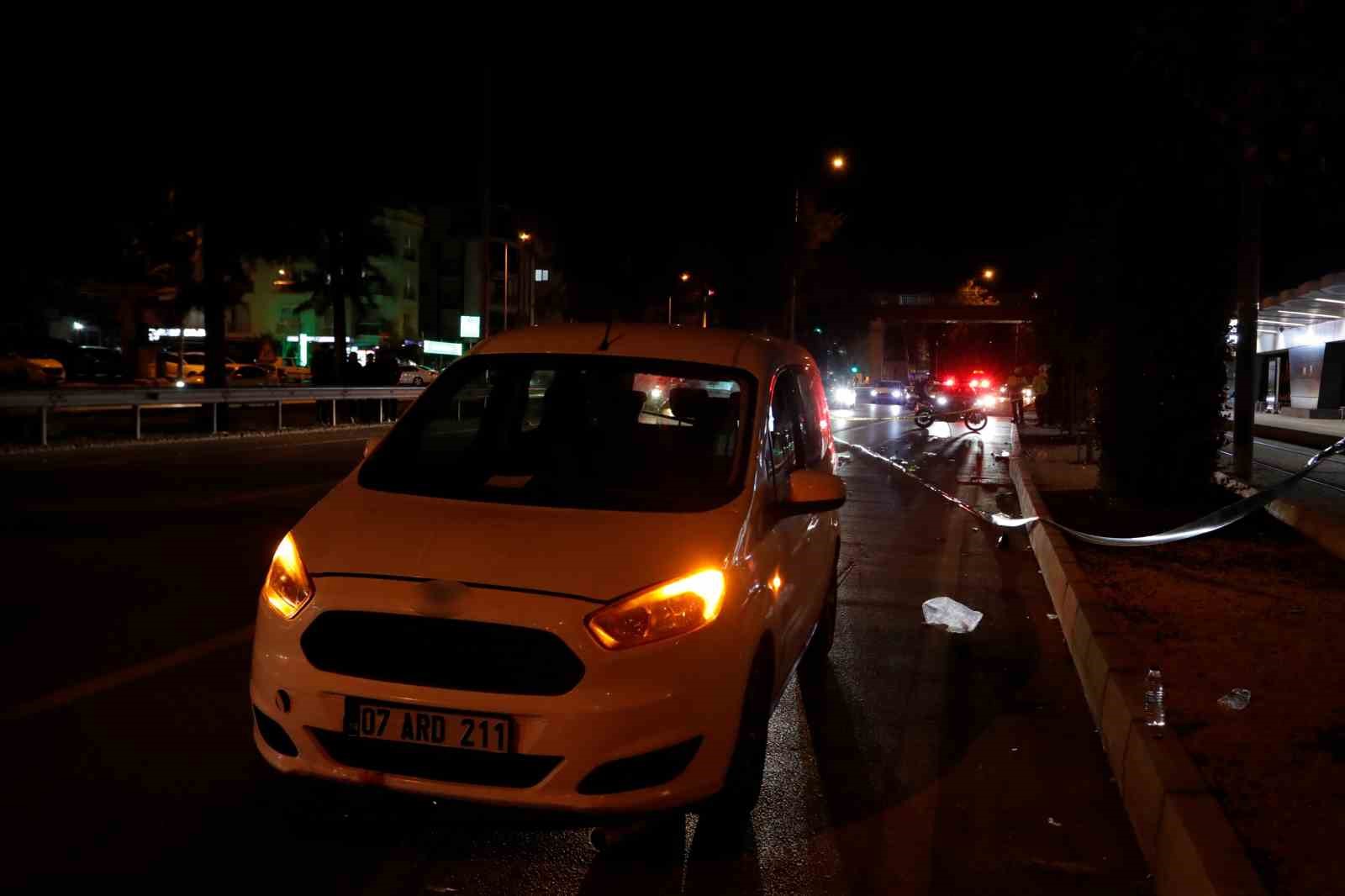Kaza, saat 23.50 sıralarında Kepez ilçesi Yenidoğan Mahallesi Dumlupınar Bulvarı üzerinde meydana geldi. Edinilen bilgiye göre, Kültür Tramvay durağında tramvaydan inen ve yolun karşısına geçmek isteyen Lütfü Büyükaydın’a (27), Ahmet Doğan T.’nin kullandığı 35 AJE 250 plakalı motosiklet çarptı. Kazada motosiklet sürücüsü ve Lütfü Büyükaydın farklı noktalara savrulurken, sürüklenen motosiklet ise yaklaşık 100 metre ileride durabildi. Çarpmanın etkisiyle savrulan ve yerde hareketsiz yatan Büyükaydın’ı fark etmeyen Baran B. idaresindeki 07 ARD 211 plakalı hafif ticari araç üzerinden geçti. Kazayı gören vatandaşlar ve diğer sürücülerin 112 Acil Çağrı Merkezi’ne ihbarı üzerine olay yerine çok sayıda ambulans ve polis ekibi sevk edildi. Sağlık ekiplerinin müdahalelesi ile hayata döndürülen Lütfü Büyükaydın, ambulansla kaldırıldığı Akdeniz Üniversitesi Hastanesi’nde doktorların tüm müdahalelerine rağmen kurtarılamayarak hayatını kaybetti. Kazada yaralanan motosiklet sürücüsü Ahmet Doğan T. ise, Antalya Eğitim ve Araştırma Hastanesine kaldırıldı. Araç sürücüsü Baran B. polis merkezine götürülürken, polis ekiplerinin kaza yerindeki incelemesinin ardından araçlar çekici ile yoldan kaldırıldı.