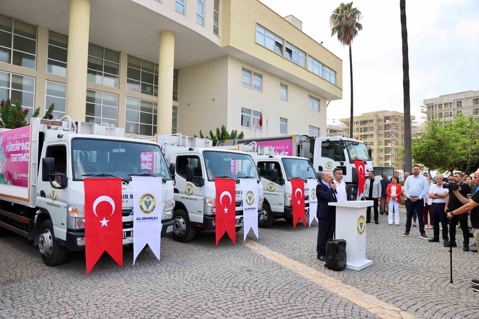 Yüreğir’in çok daha fazla hizmeti hak ettiğini belirten Başkan Demirçalı, “Bugünden itibaren Yüreğir artık daha temiz olacak. Bugün 7 adet aracımızı belediyenin kasasından bir tek kuruş çıkmadan hibe yolu ile Yüreğir’imize kazandırdık. Araçlarımız yaklaşık 20 milyon lira değerinde. Önümüzdeki günlerde yine yeni araçlarla araç parkurumuzu güçlendirmeye devam edeceğiz. Yüreğir çok daha fazla hizmeti hak ediyor. Artık Yüreğir’imizde araçlarımız su akıtmadan, mikrop yaymadan, koku bırakmadan çok daha iyi hizmet verecekler. Bu ayın sonuna kadar temizlik hizmetlerimizin hiçbir eksiği kalmayacak. Hayırlı uğurlu olsun.” diye konuştu.