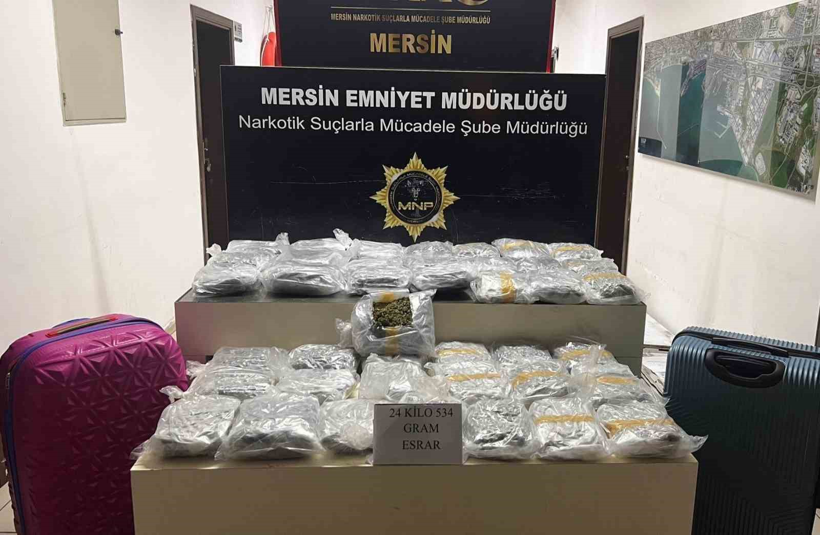 Mersin ve Adana polisinin birlikte yaptığı operasyonda bir kamyonetin kasasında plastik borularının altına gizlenen valizde 24 kilo 534 gram esrar ele geçirildi. Mersin’de başka bir çalışmada ise 8 kilo 500 gram esrar daha yakalandı. İki operasyonda 5 şüpheli yakalandı.