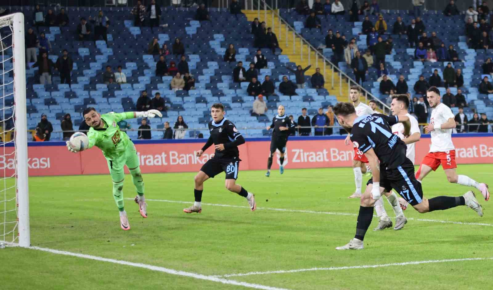 32. dakikada Bünyamin’in savunma arkasına attığı ara pasında Aymbetov topla buluştu. Kaleci ile karşı karşıya kalan Aymbetov şutunu çekerken top kaleci Ogün’de kaldı.